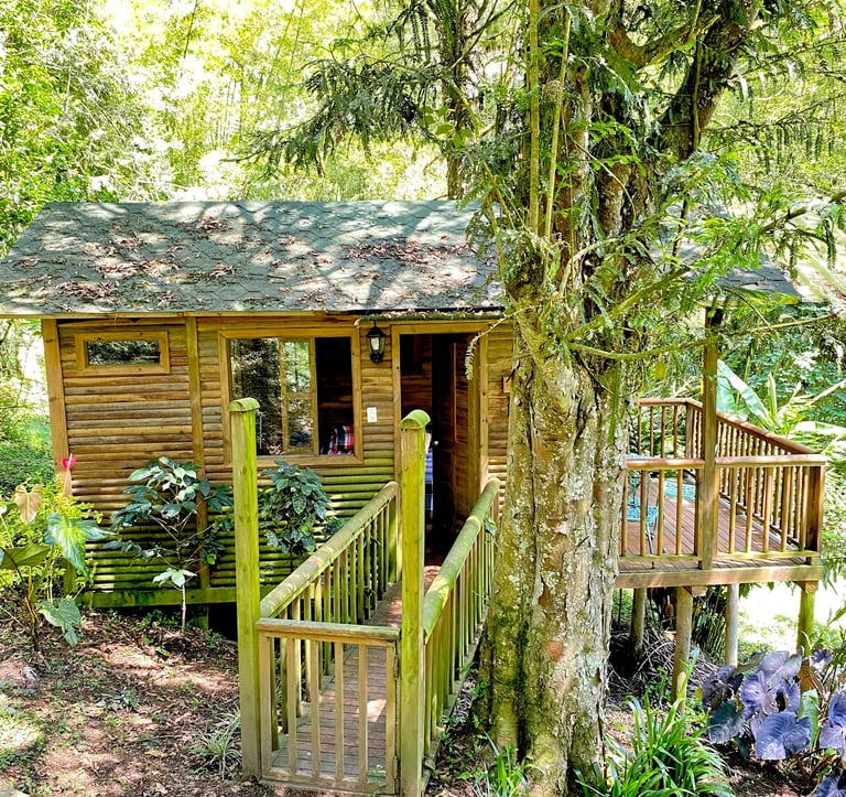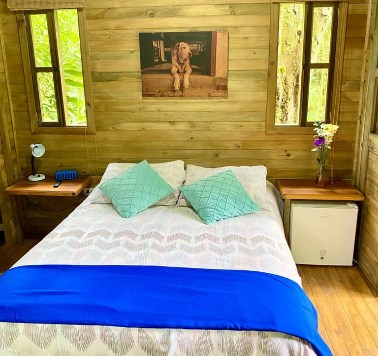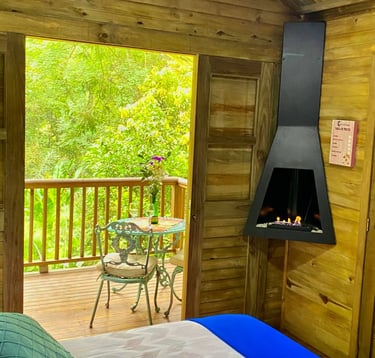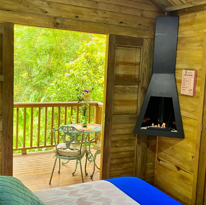 Disfruta de su hermoso balcón, rodeado de árboles y el relajante sonido de la quebrada, para que puedas desconectarte del mundo y conectarte contigo mismo. Además, su pequeña chimenea te brinda el calor y la comodidad que necesitas para un sueño reparador.